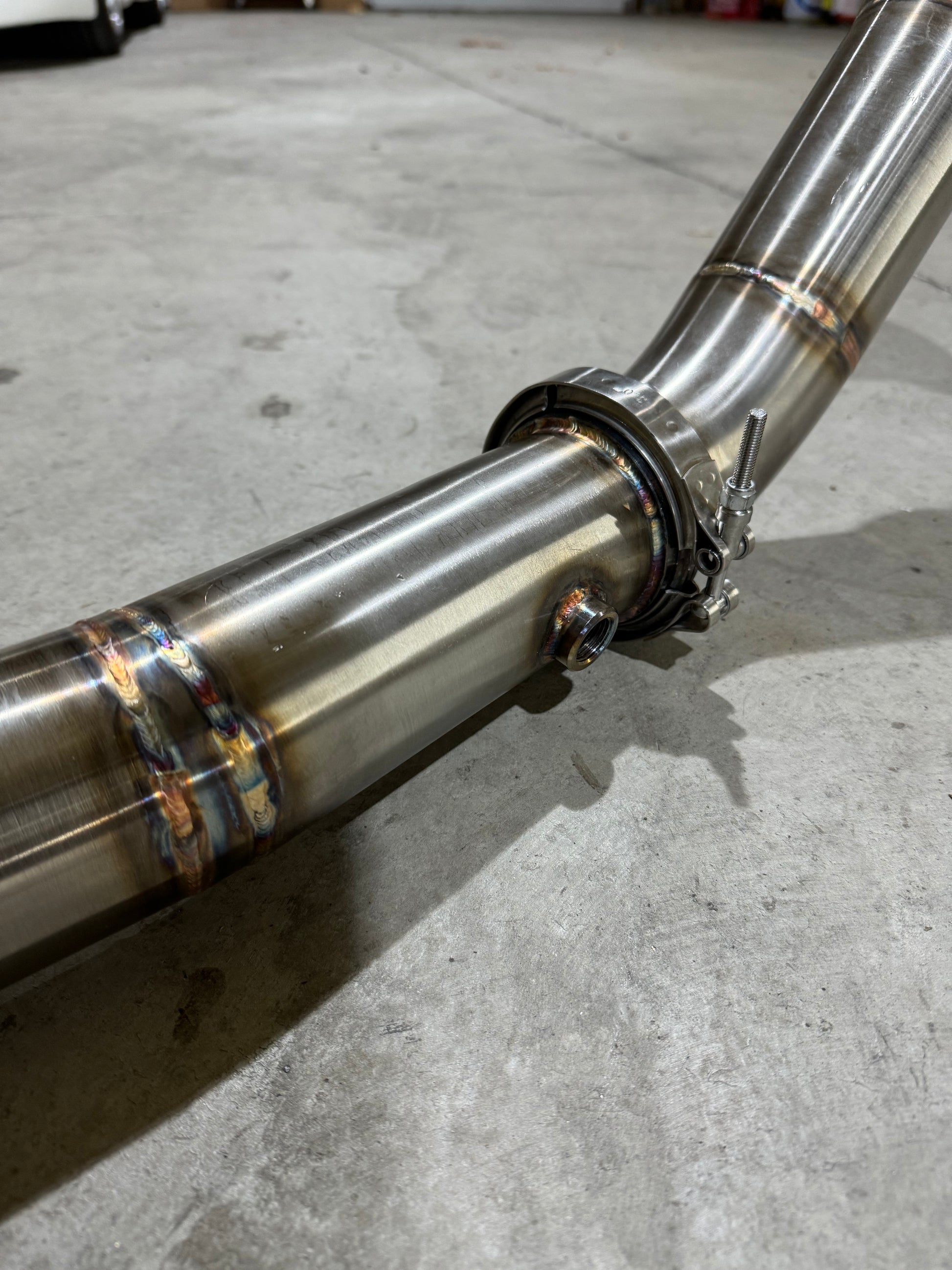 - V-Band Clamp connection to mid-pipe from downpipe