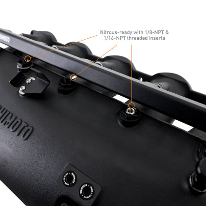 Insane power levels require equally insane amounts of fuel, so we've added provisions for port fuel injection, including a billet fuel rail and anodized aluminum injector blanks to cap the injector ports when not in use. Our precision-machined injector ports feature optimized geometry for the perfect mixing of air and fuel, with no drilling required. The included PTFE -AN fuel lines and fittings are suitable for ethanol and tee into the stock fuel lines. If cooling, flow, and reliability weren't enough, we also designed our charge air cooler to fit like stock. This kit includes brackets to keep your wiring tidy, a mount to fit the stock engine cover, and custom EVAP lines for a seamless installation. A convenient cutout in the plenum allows easy access to the oil filter without affecting flow. Like all Mishimoto products, this performance charge air cooler for the 2021+ BMW G80 M3 is backed by our Mishimoto Lifetime Warranty for a lifetime of exceptional performance. If you want the ultimate upgrade to squeeze serious power from your S58 engine, this Mishimoto charge air cooler manifold is for you.Â