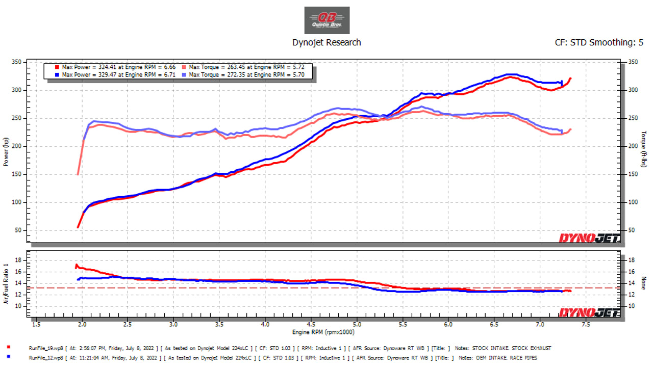 - 5whp/9ft-lbs. gains over stock (3rd party dyno tested with stock intake/ECU software)