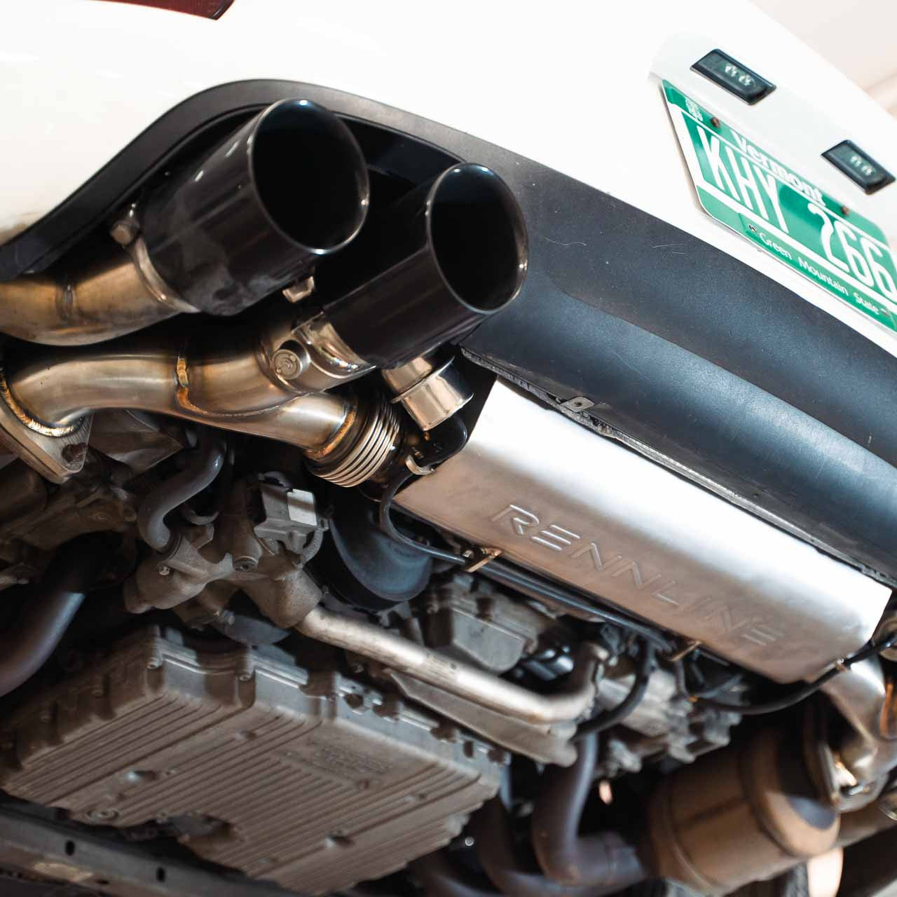 Due to the valved design, when open we saw an increase of 5HP and 9TQ to the wheels without a tune. Not only does this exhaust sound and look amazing, but it performs just as good as it looks. Paired with Rennline’s carbon fiber intake and a tune, this will unleash the potential of your Carrera/Carrera S that has been hiding behind the factory restricted exhaust and intake.