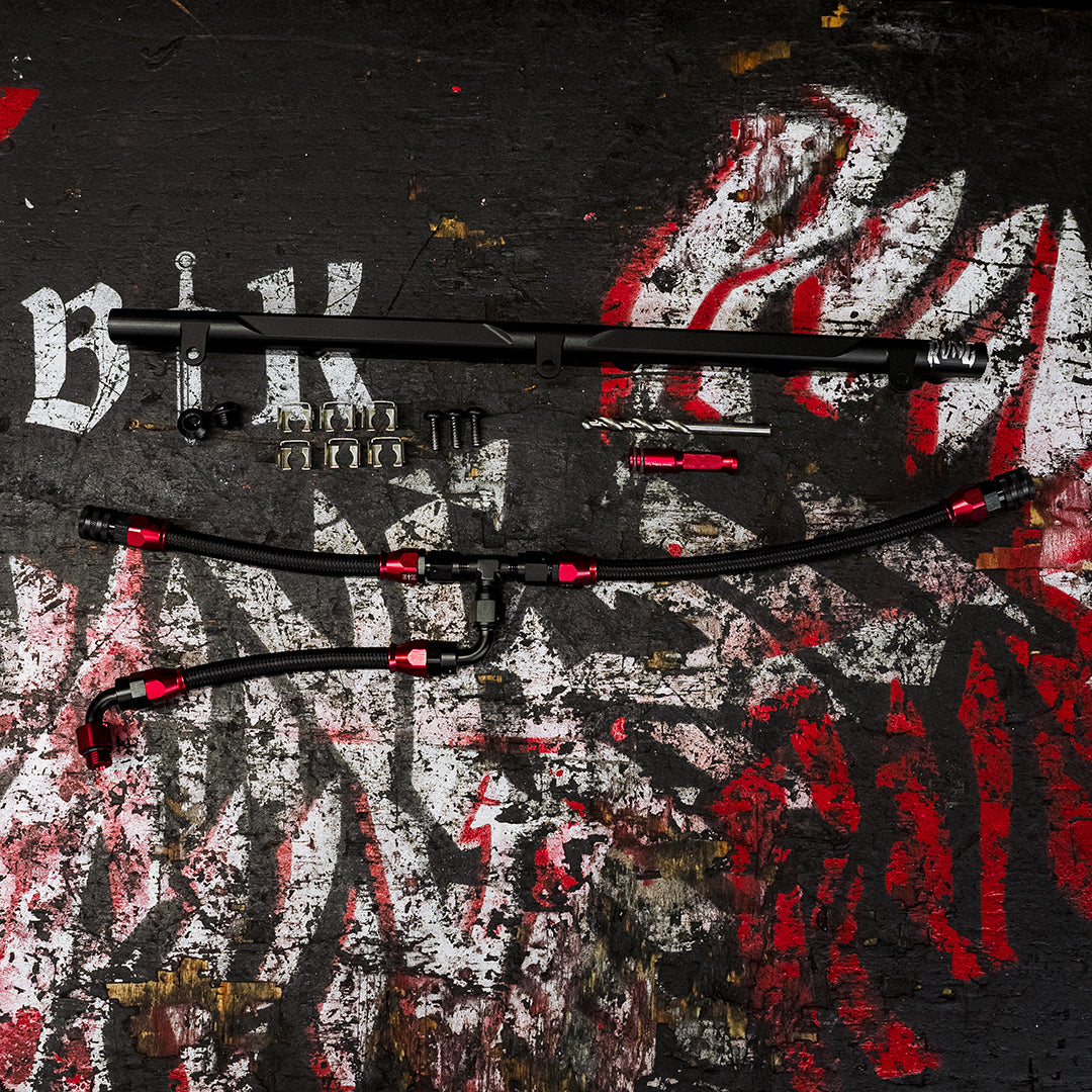 All fuel lines are smooth-bore PTFE paired with motorsport-grade billet fittings. No rubber hose or plastic fittings are used. The kit includes all required hardware and is compatible with popular injector controllers such as ReFlex, AIC, and JB4-based systems.