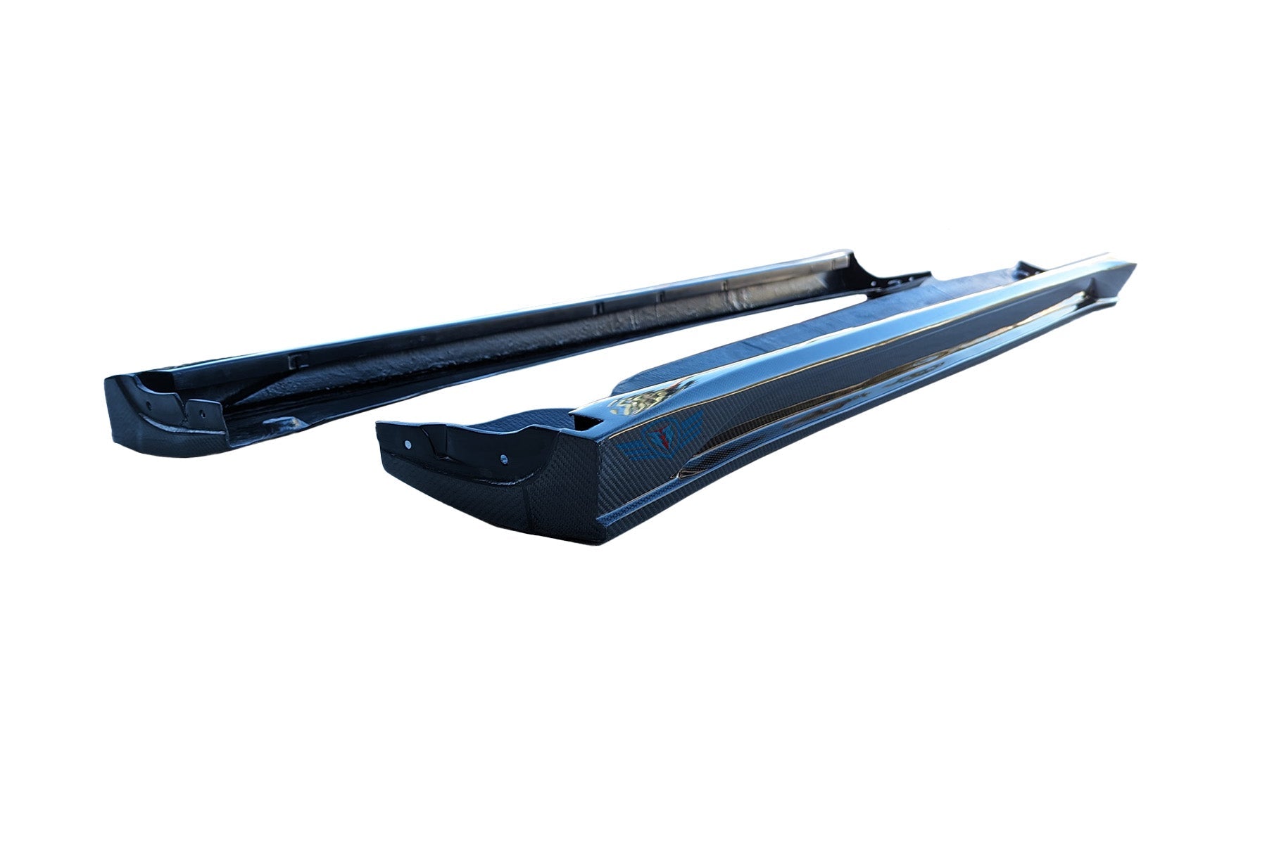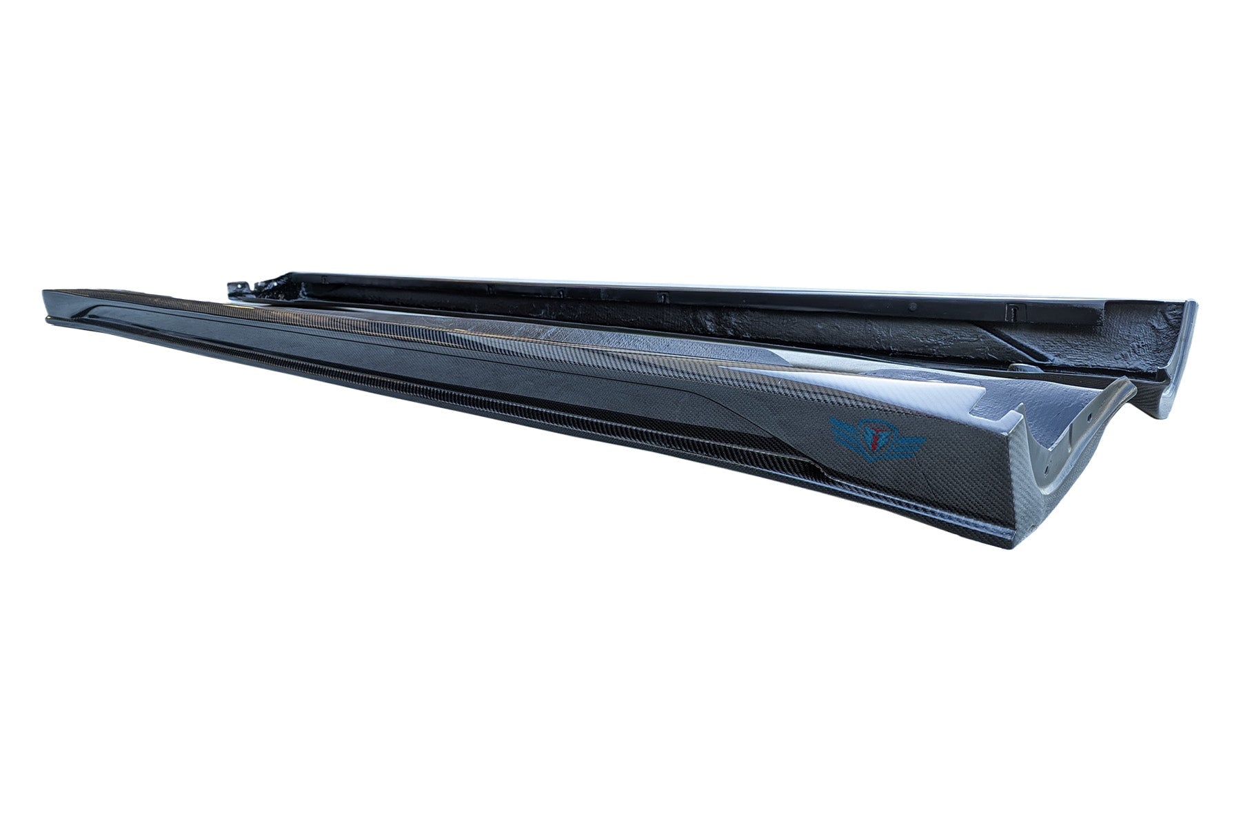 Transform your Tesla Model Y into a work of art with the FYBR Aerodynamics SHX side skirts. Handcrafted using high quality genuine carbon fiber fabric, this 3-piece full replacement design creates something truly unique. Full replacement means this valence kit will be installed in place of the OEM side skirts (aka rocker panels).