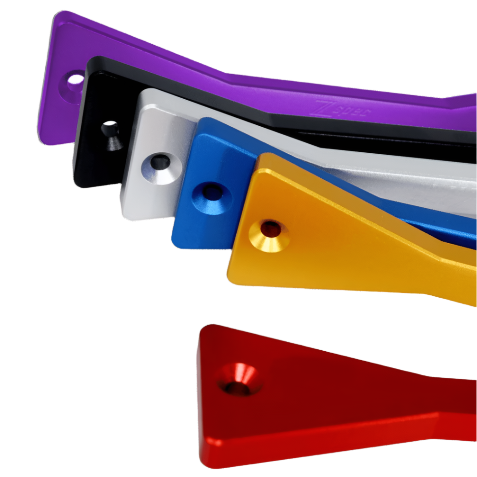 The ZSPEC includes a custom billet-Aluminum top-bracket with stainless J-hook rods and stainless fasteners. Available in a number of finishes.