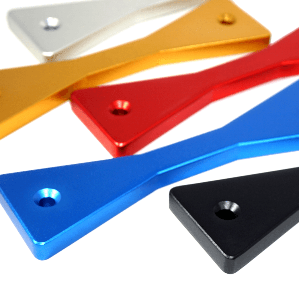 Top bracket is 6061 billet-aluminum - available in multiple finishes - either etched, or blank.