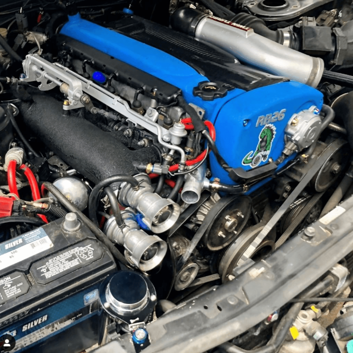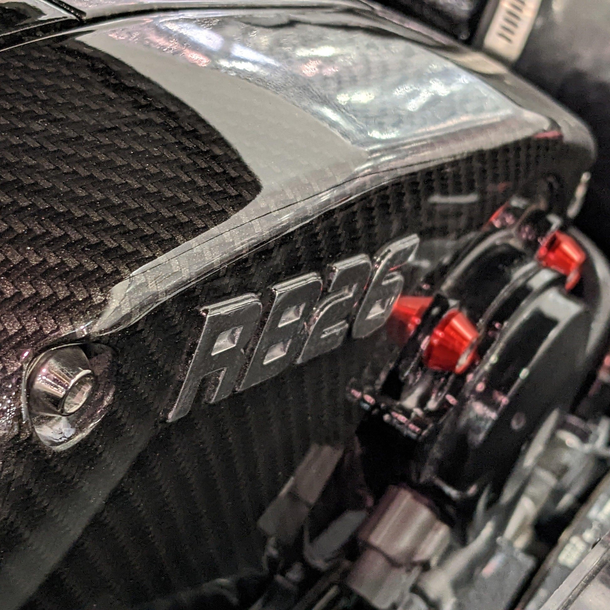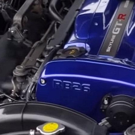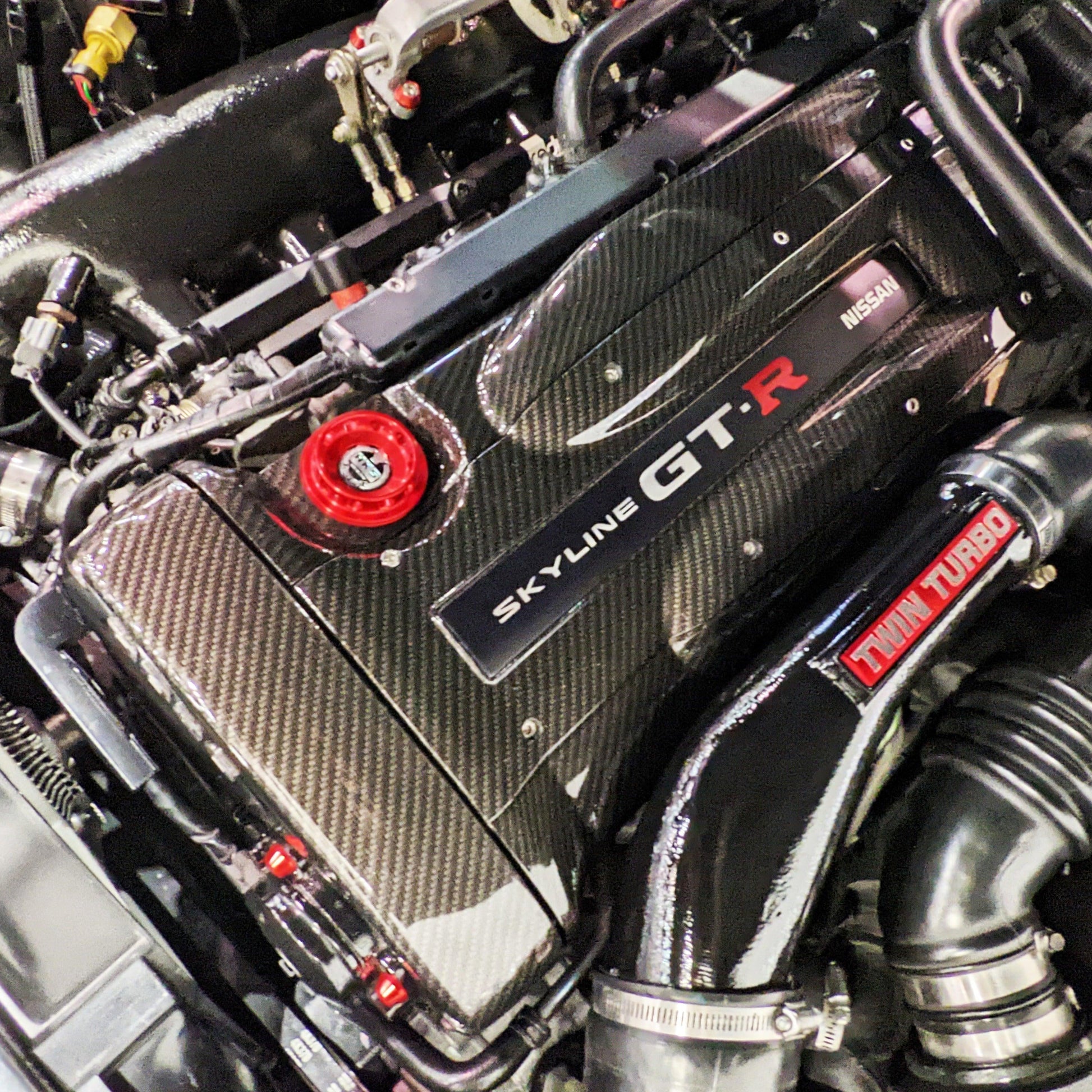 The kit includes fasteners to replace a variety of visible areas of the Skyline GTR's engine bay (and some outside of it).Ā