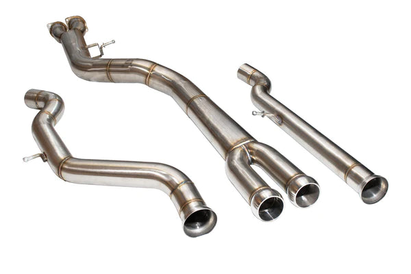 The Active Autowerke F8X Mid Pipe was specifically designed to eliminate the highly restrictive nature of the OEM F80 M3 and F82 M4 mid pipe thus creating optimal exhaust flow and drastically improving performance. In addressing the annoying sound ( described by many like that of a weed-eater ) we needed to better understand the issue. After much research and testing we discovered the synchronization of the Turbos as the main factor in the sound. The solution was a single mid pipe which eliminated much of the annoying sound. The next challenge was making a large 3.5" pipe ( needed for optimum performance ) fit without ground clearance issues - thus the oval pipe. Engineered for an exact fit on both the F80 M3 and F82 M4, the difference in power with this mid pipe will be noticeable the moment it is installed!