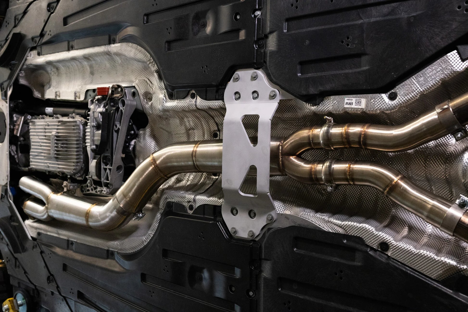 The ARM S58 Midpipe will secure to the exhaust hanger on the passenger's side using the OEM style mounting bracket. This helps the exhaust secure during aggressive driving.