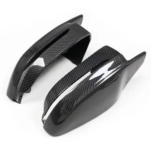 Our carbon fiber M-Style mirror caps are a must for a BMW in todays aftermarket world. What better way to flex on stock cars than a set of mirror caps that scream wealth and power? Our mirror caps are complete replacements and your stock ones will have to be removed.