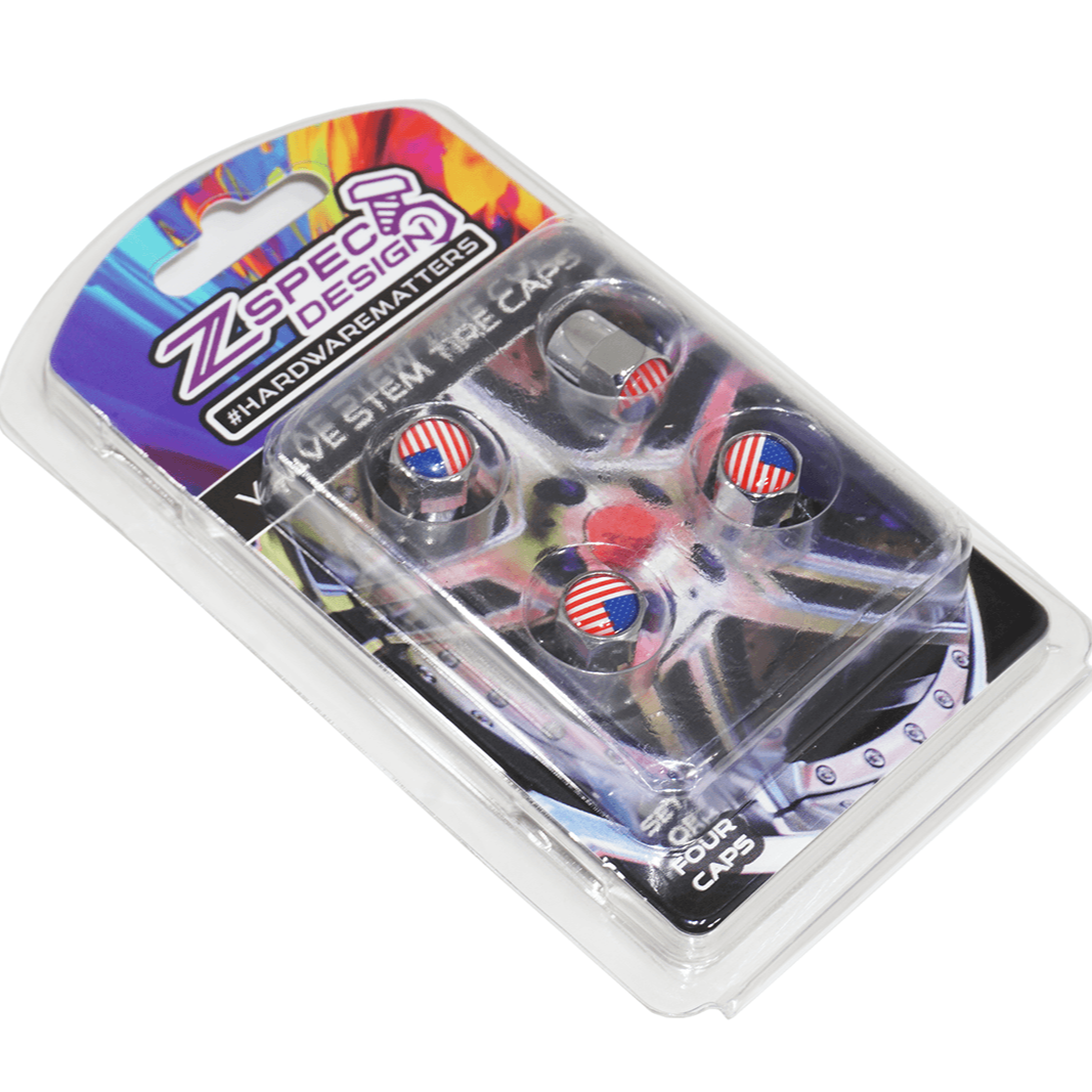 Chrome Valve Stem Tire Caps, Style: United States (USA) Stars & Stripes Flag