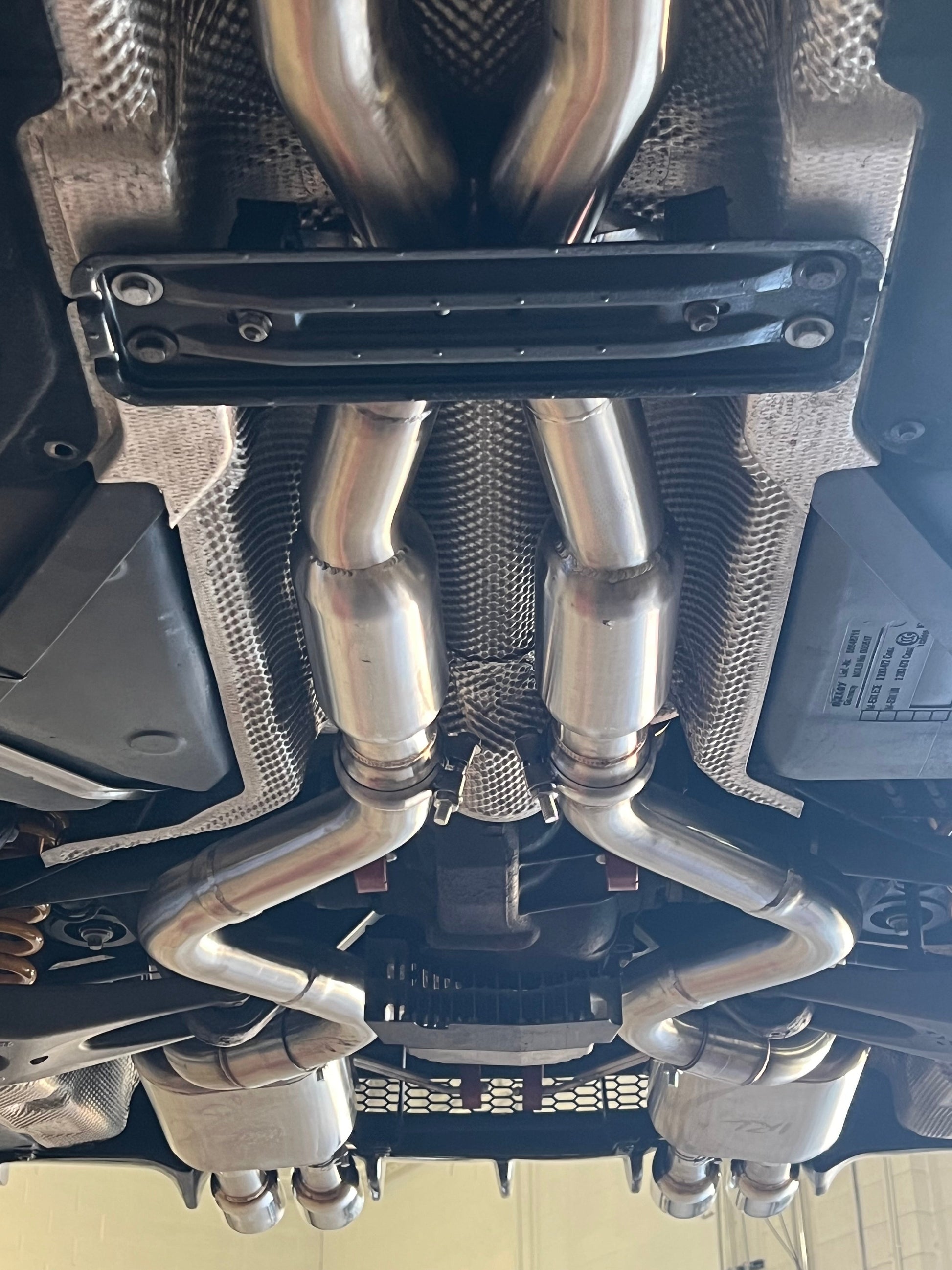 This system eliminates the secondary cats and the primary cats meaning it is designed for off road use.