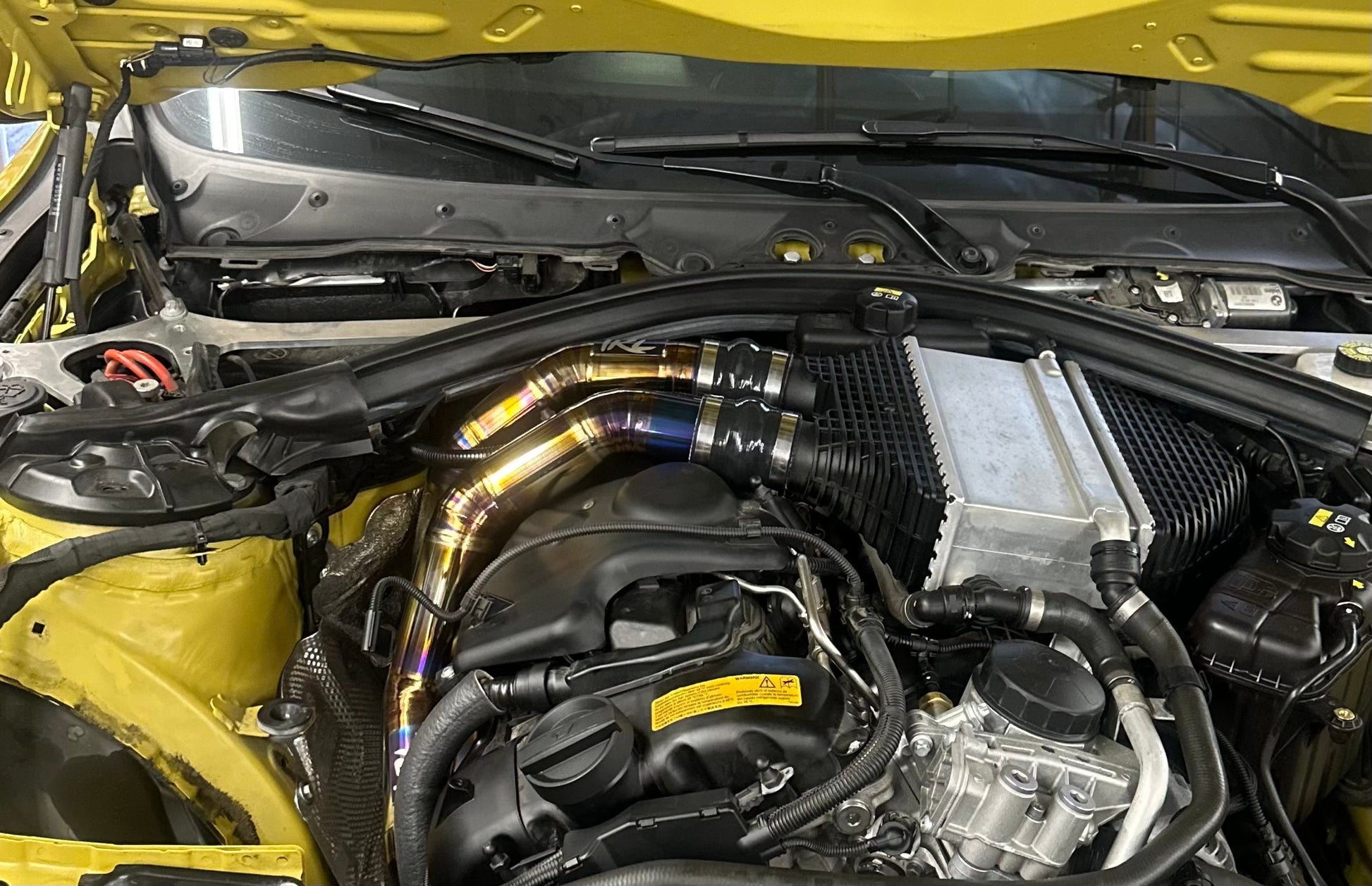 With increase power, weak points start to appear in the engine and accessories. One of the most common failures of the S55 engine is the factory chargepipes. The titanium charge pipe will solve these issue while improving efficiency.