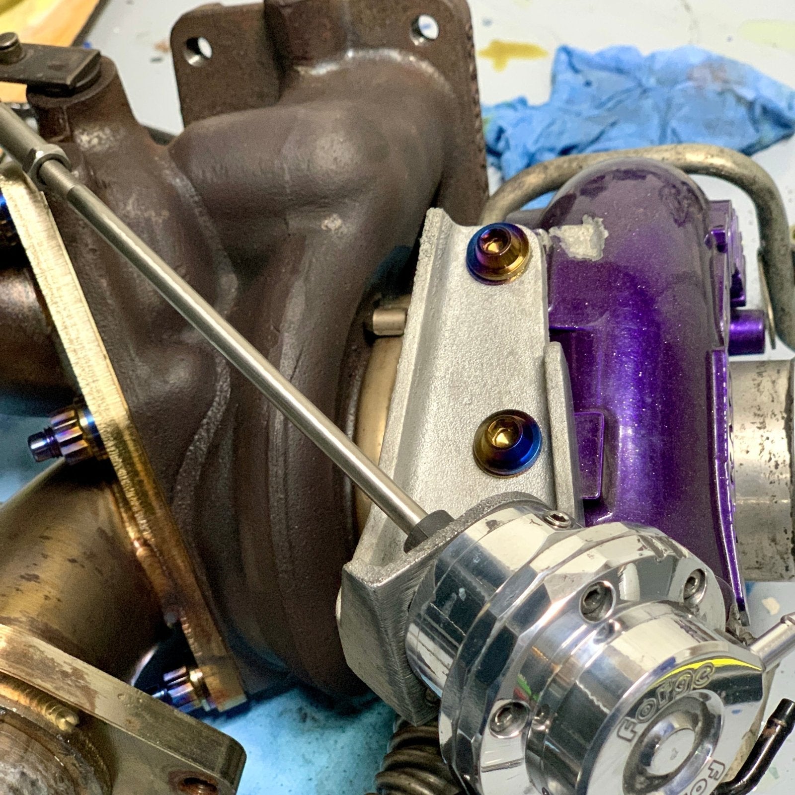 This kit replaces the factory bolts that hold your wastegate actuator to the turbo with beautiful titanium! Each piece is hand polished before receiving our proprietary anodizing process, which gives it the long-lasting vibrant colors we're known for!