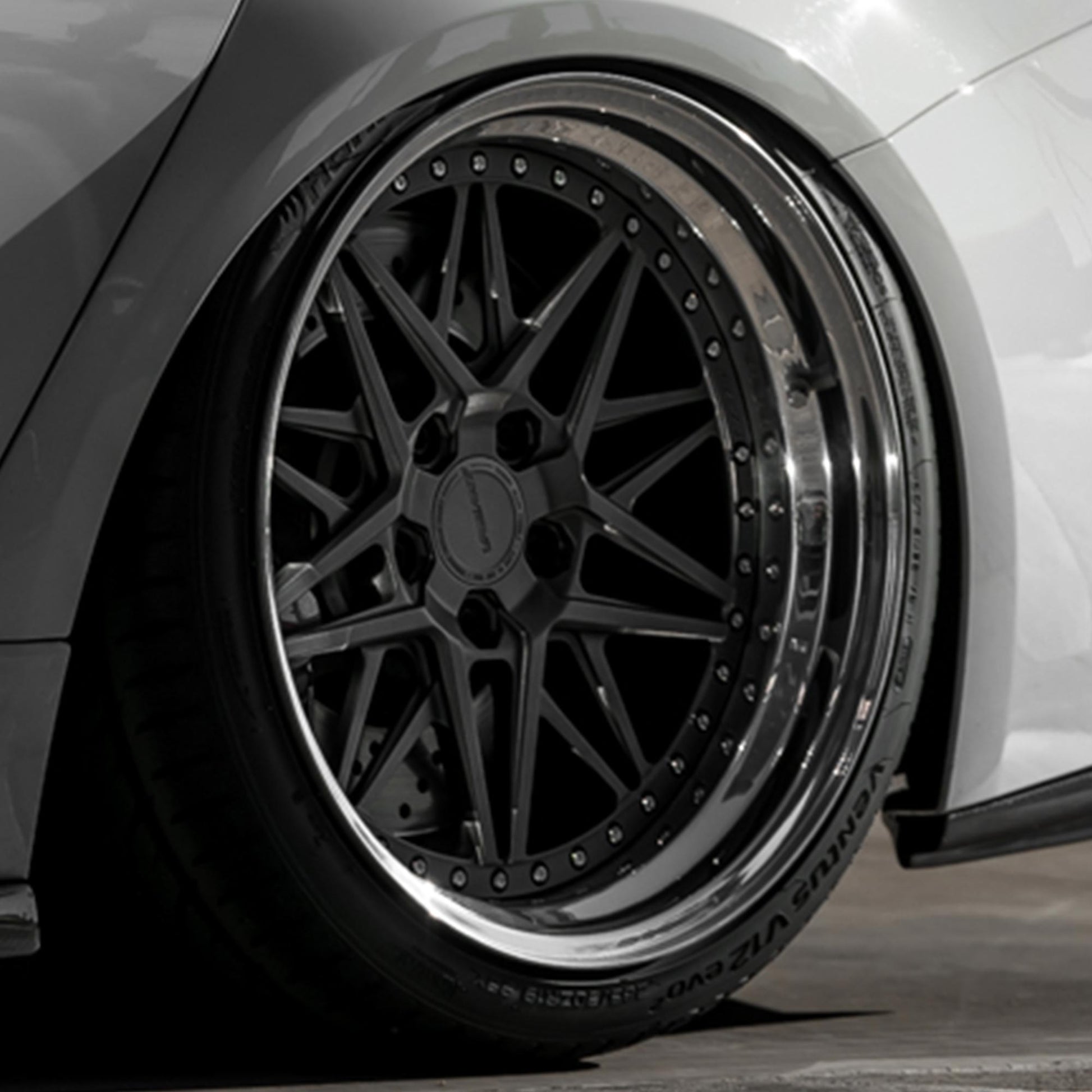 The SZK-3P is a unique layered double split 5-spoke design that compliments most of today’s modern sports cars, supercars, and aggressively styled luxury vehicles. This semi-custom 3-piece forged wheel is crafted using 6061-T6 aerospace aluminum with the utilization of our in-house CNC machining center, the SZK-3P is available for most five-lug bolt patterns and offered in a wide range of fitments.Â