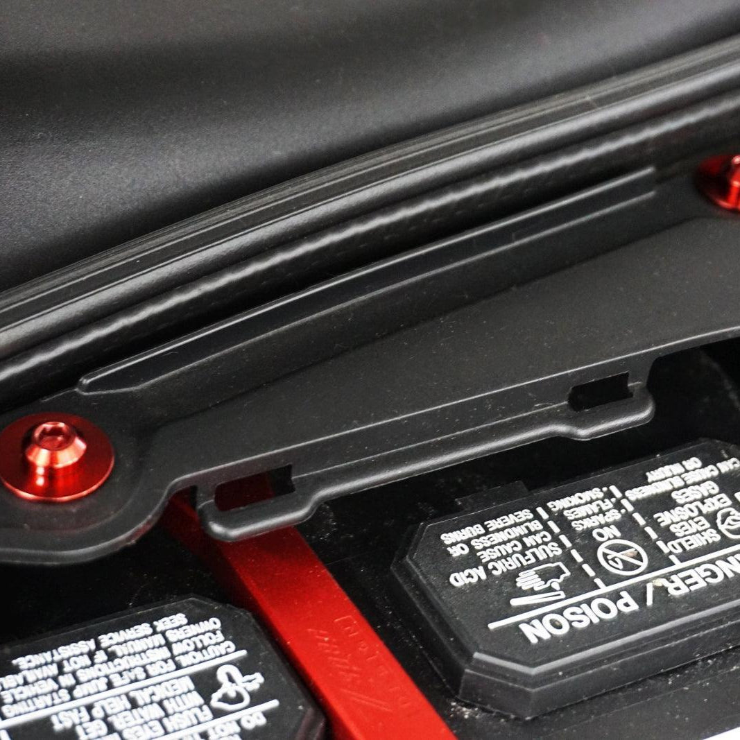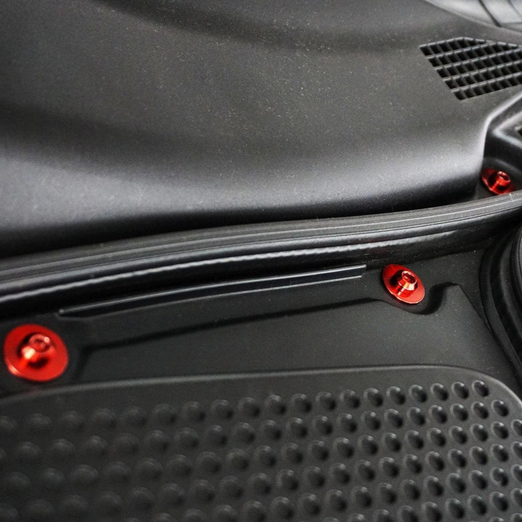 2) Position panel back in place and hand-start each titanium fastener with the included washer.