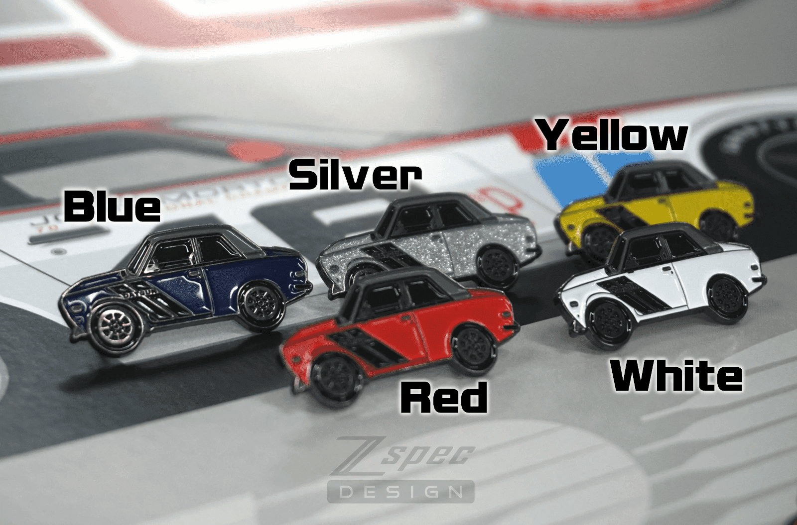 ZSPEC designed a pin to pay tribute to the Datsun 510 sports sedan. The 510 took on and others in the day - on the road and at the race-track with legendary race-teams like BRE setting records and winning championships.