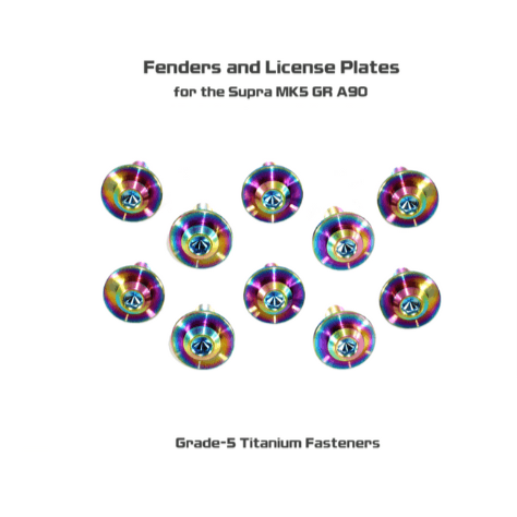 Titanium-Series "Fenders and License Plates" fastener kit for the Supra MK5/MKV (GR A90) platform includes 18-pieces. Fasteners are race-grade, corrosion-resistant Grade-5 Titanium