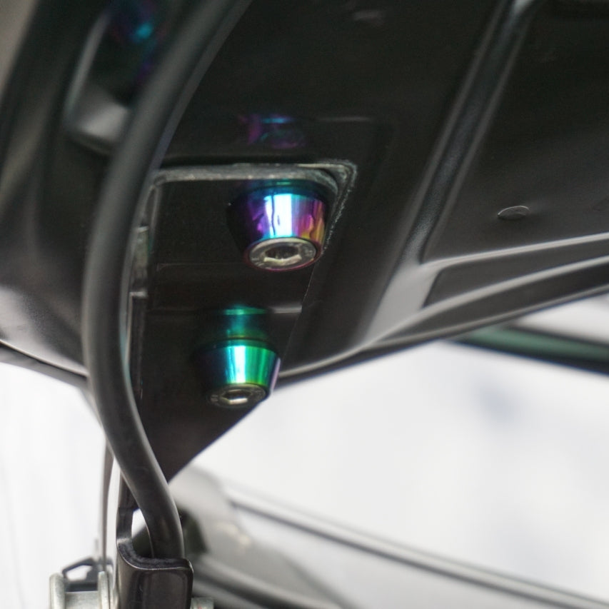 Fastener Kit for the EVO X "Hood Hinges and Hood Latch". This kit fits all EVO X models and replaces Hood Hinge Fasteners and the Fasteners for the Hood Latch.