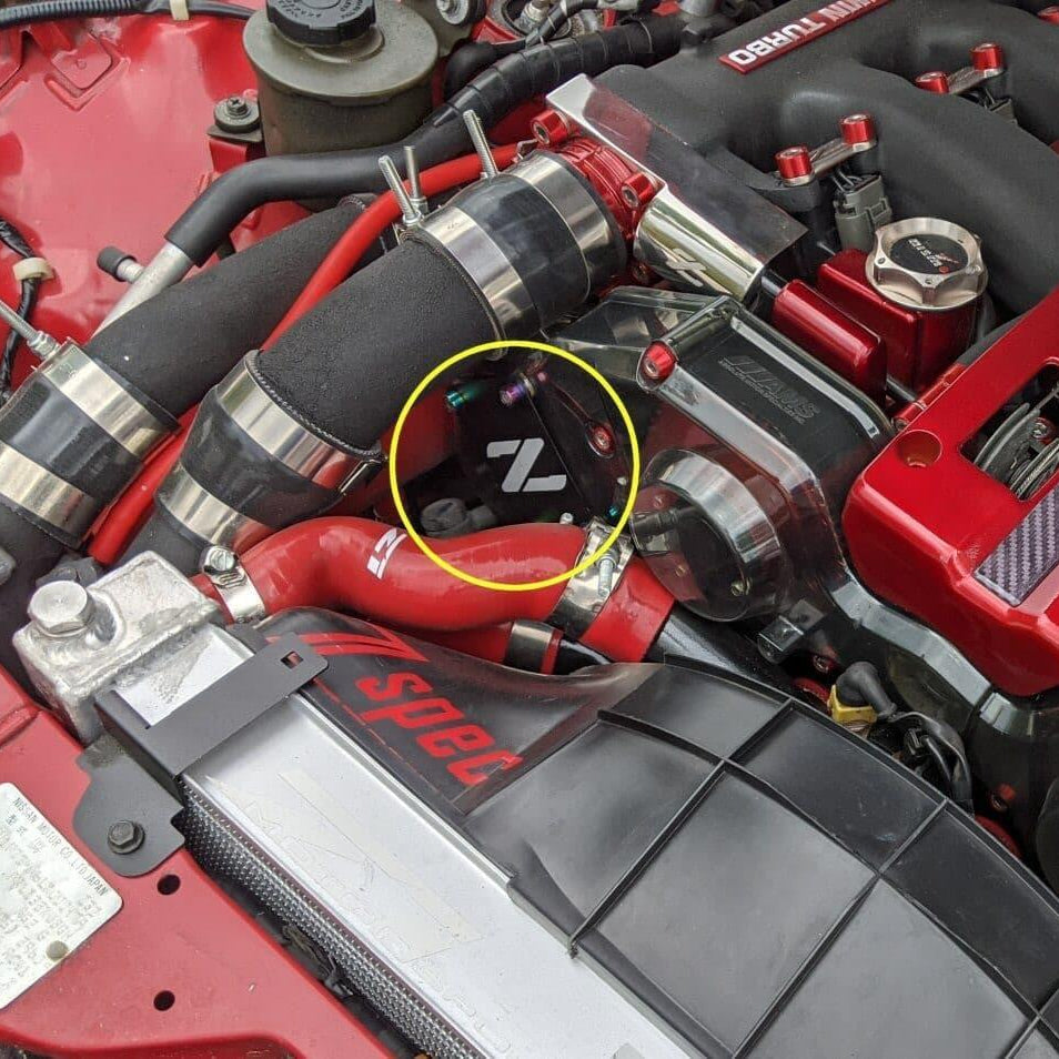 Once this relocation is complete, the OEM Passenger-Side Timing Cover has four holes left unfilled. This product was produced based on an enthusiasts idea to use these left-over holes as a decoration opportunity. Engraved with a Z32-style "Z", they're great for solving this issue or utilize this for another creative project, who knows?