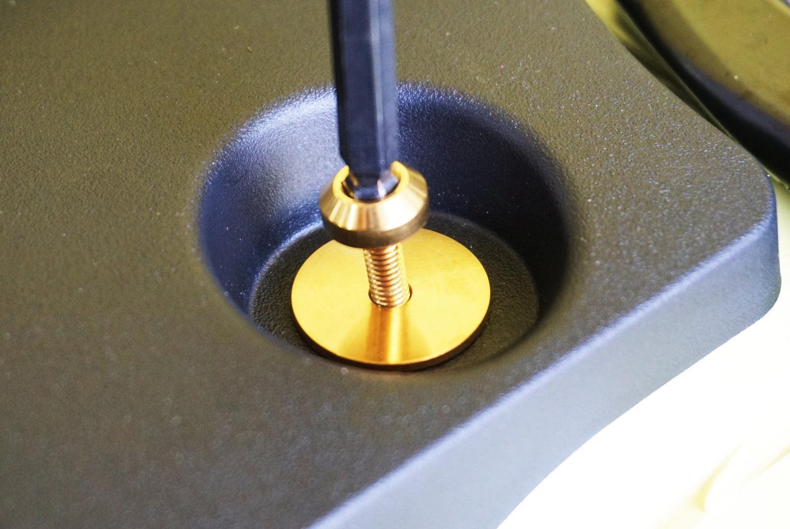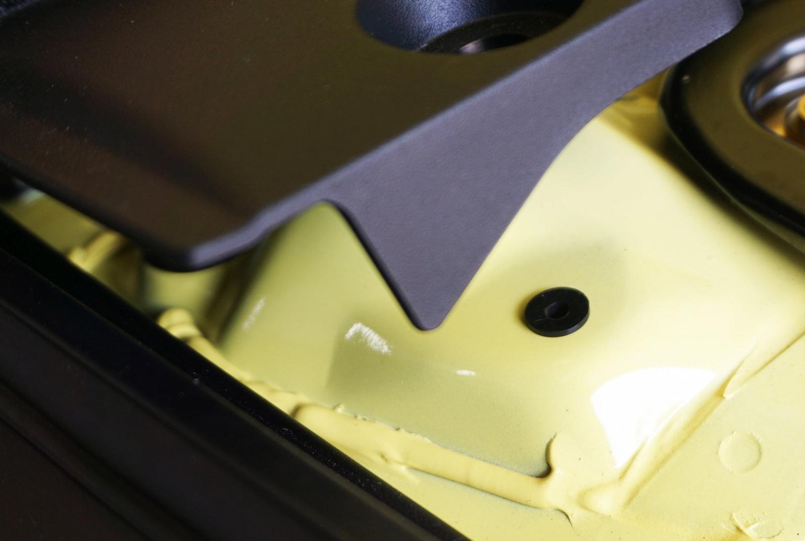 3) Install ZSPEC titanium fastener with washer into each well nut and snug (well nut will bulge on backside to "hold" plastic in place.