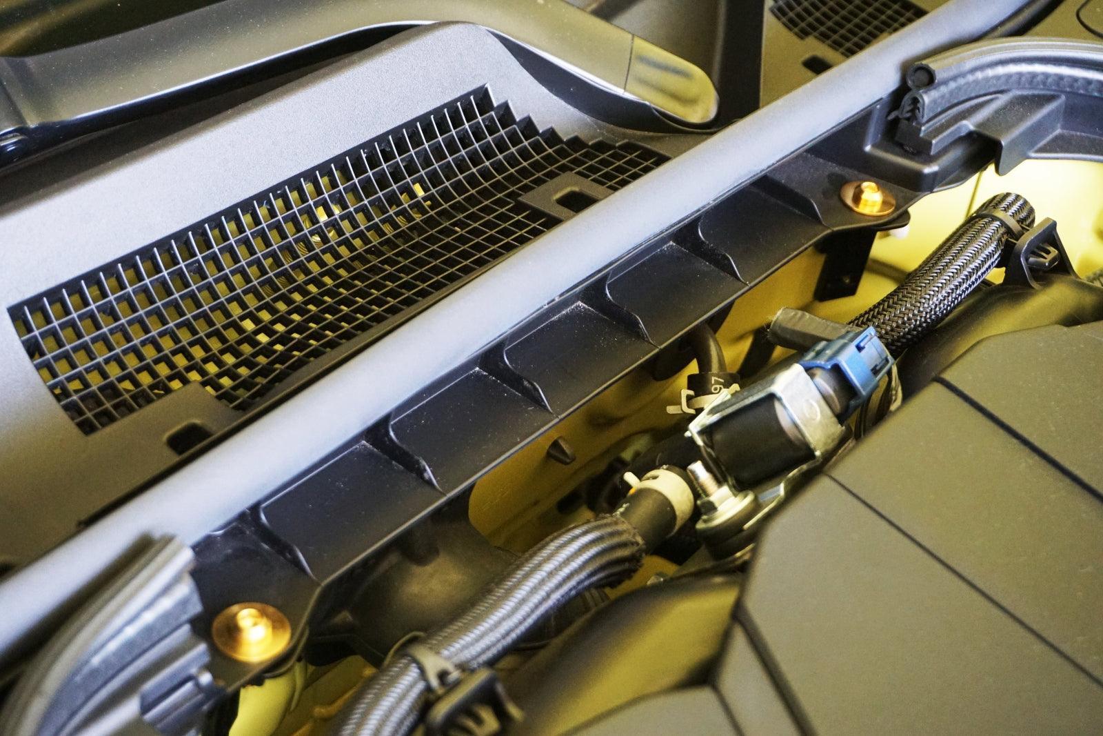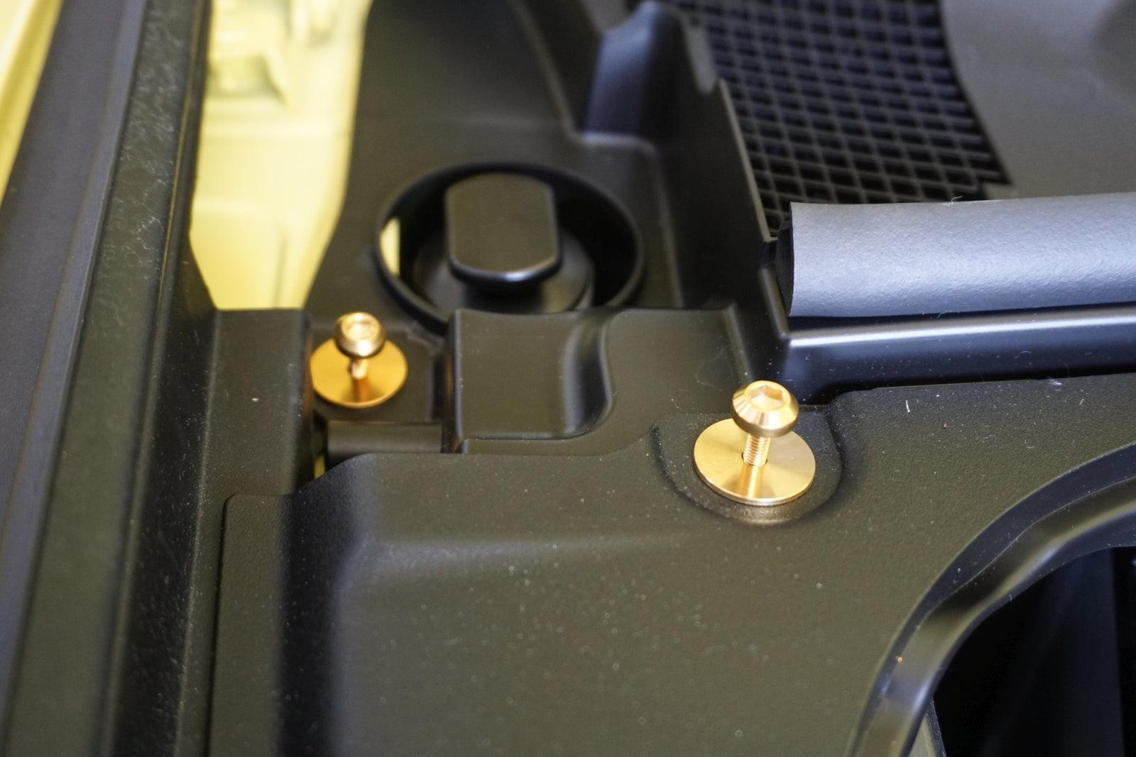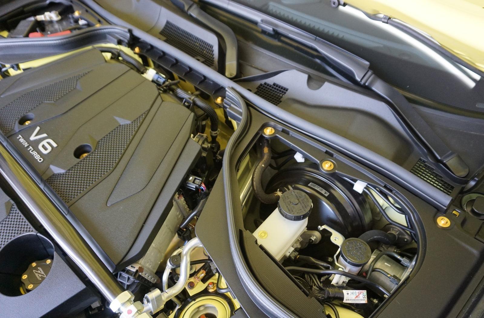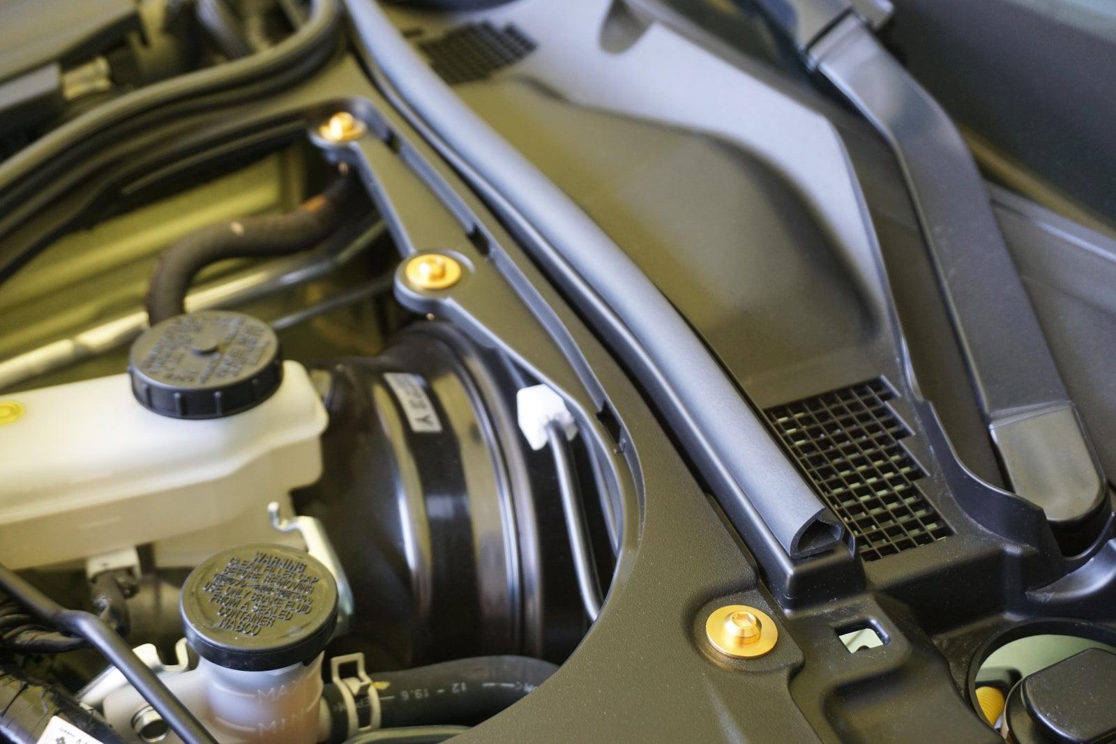 The Factory Plastic Clips break easily and are often chipped up or missing over time. Upgrade your engine-bay's look with ZSPEC's lightweight GR5 Titanium hardware solution leveraging rubber well nuts.