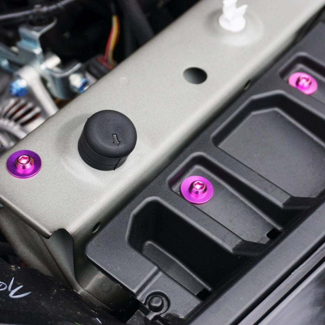 ZSPEC Stage-1 Dress Up BoltsĀ® Fastener Kit for '23+ Mitsubishi Mirage is an 83-piece of show-quality titanium hardware curated for the platform.