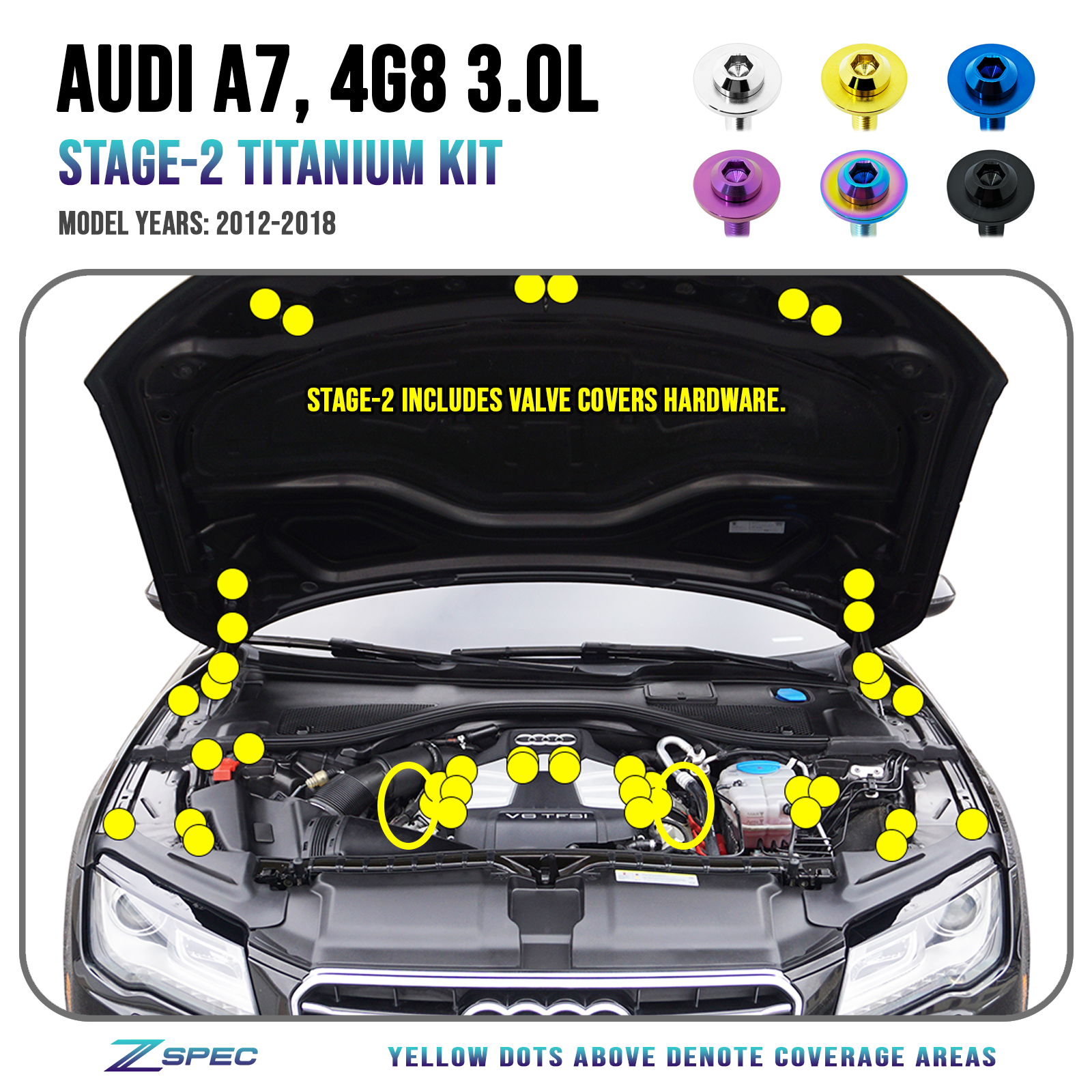 ZSPEC "Stage 2" Dress Up BoltsĀ® Fastener Kit for '12-18 Audi A7 4G8 3.0L, Titanium