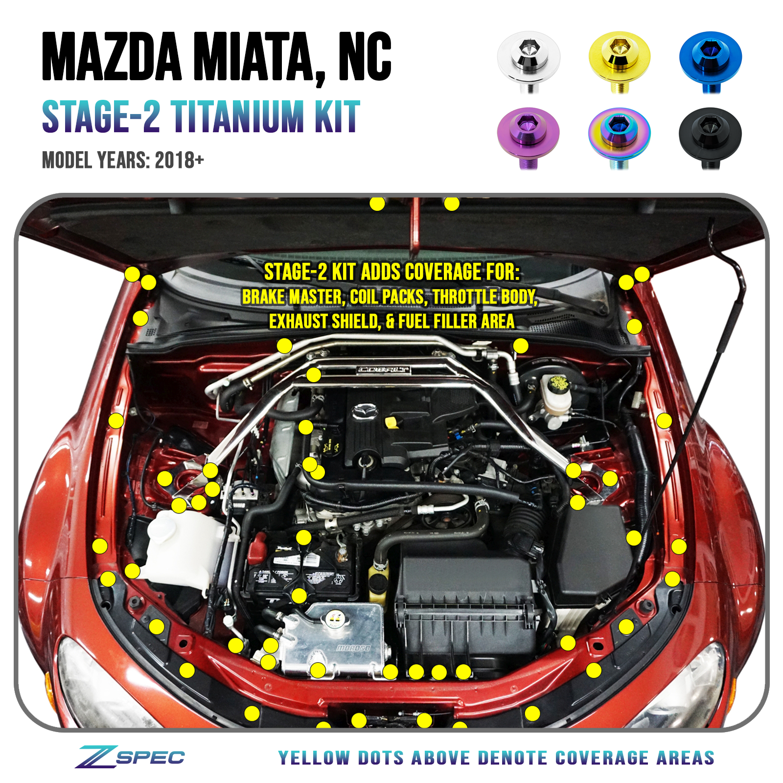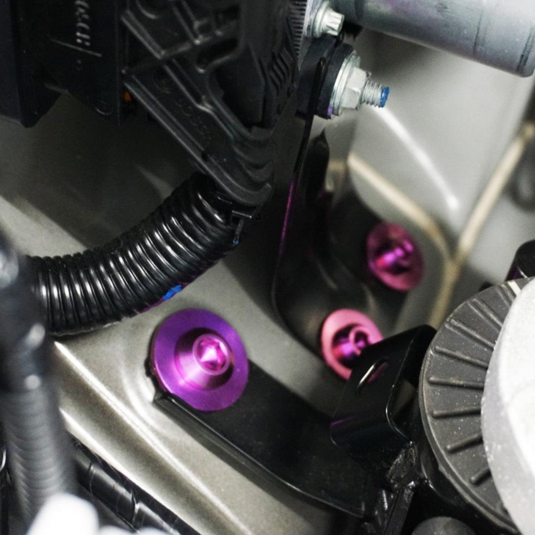 ZSPEC "Stage 2" Dress Up BoltsĀ® Fastener Kit for '23+ Mitsubishi Mirage is a 135-piece kit utilizing lightweight grade-5 titanium hardware.