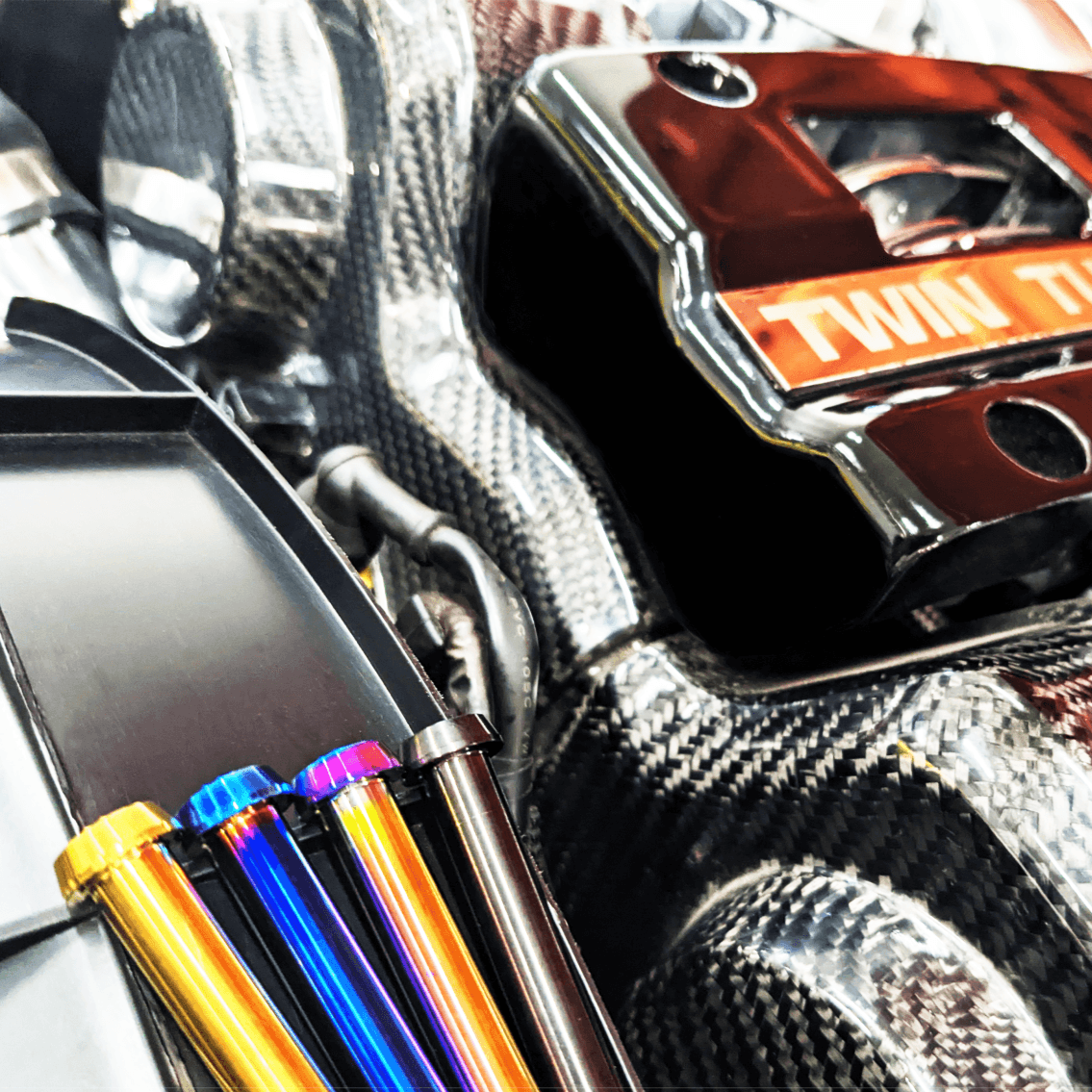 The most comprehensive engine bay fastener kit for the '90-'99 300zx Z32 platform now offered as a hybrid-titanium series kit for unparalleled style-selection.