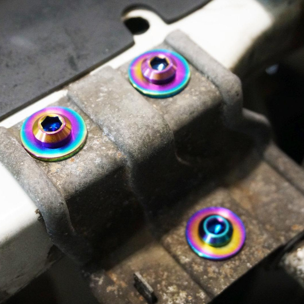 The ZSPEC Stage-2 Engine Bay Fastener Kit for the Nissan D21 Hard-Body Pickup Truck includes 120 pieces of grade-5 titanium hardware.