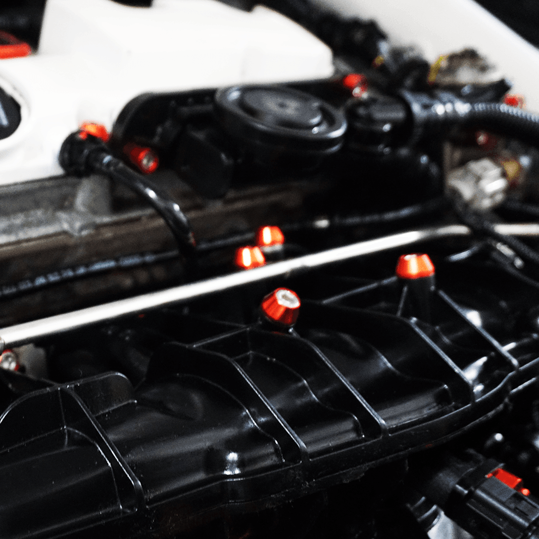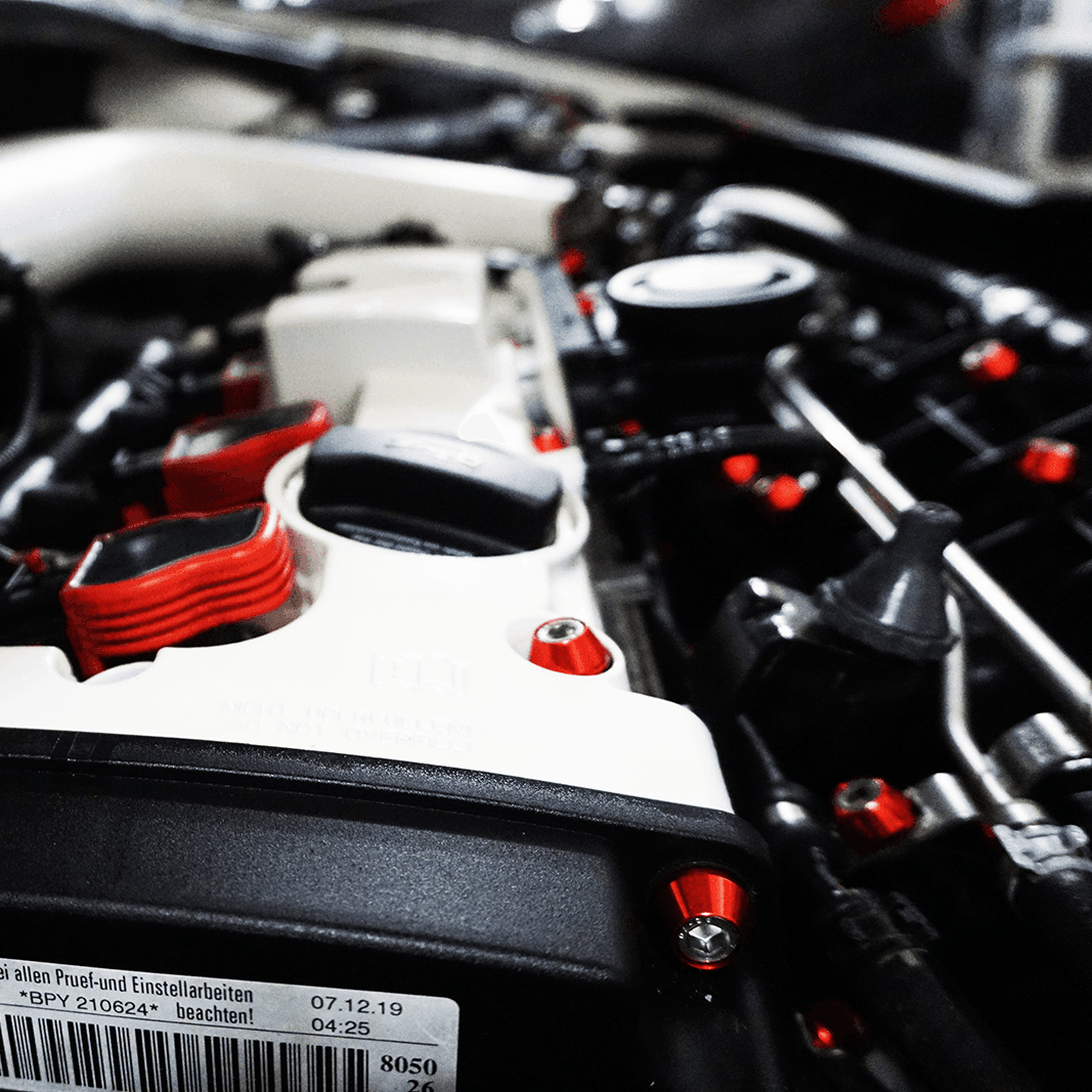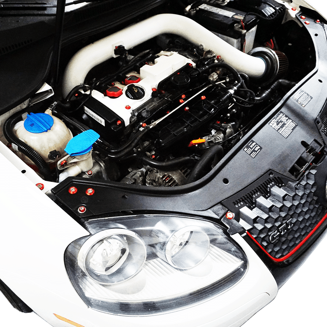 The ZSPEC Stage-3 Engine Bay Dress-Up Fastener Kit for the MK5 GTI Golf and Jetta is comprised of over 200 pieces. Our fastener kits utilize top-quality stainless steel fasteners and billet-aluminum colored finish washers.