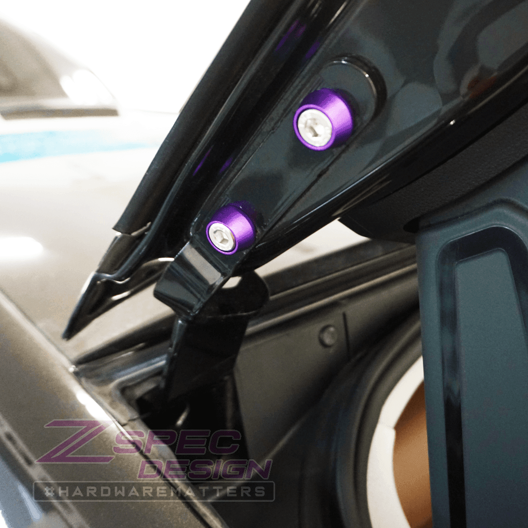 The kit's fasteners areĀ SUS304 Stainless Steel and colored finish washers are billet-aluminum.Ā ZSPEC Stainless-Billet fastener kits provide the deepest coverage and value while providing a clean updatedĀ appearance.