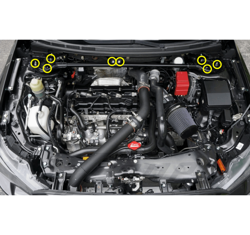 Strut Bar Fastener Kit for the EVO X factory bar and should work with aftermarket strut bars which attach like the original using original hardware.