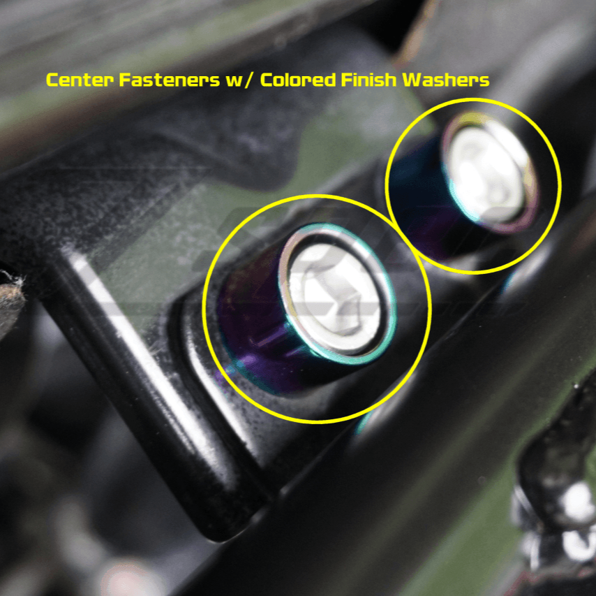 (2) billet colored finish washers (for the center-bracket strut bar bolts).