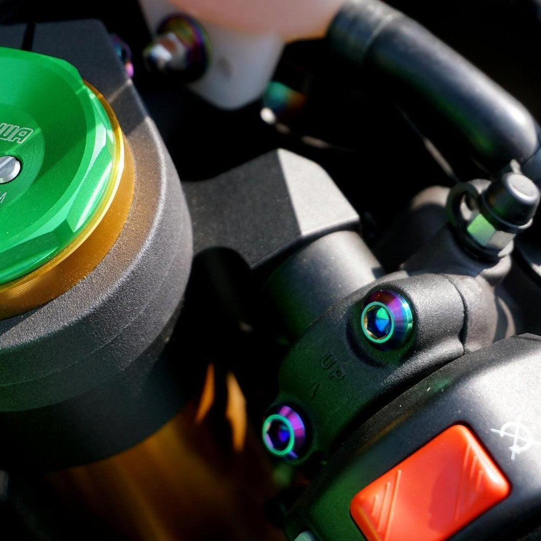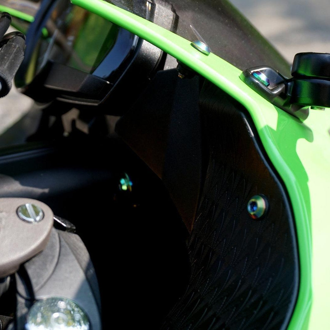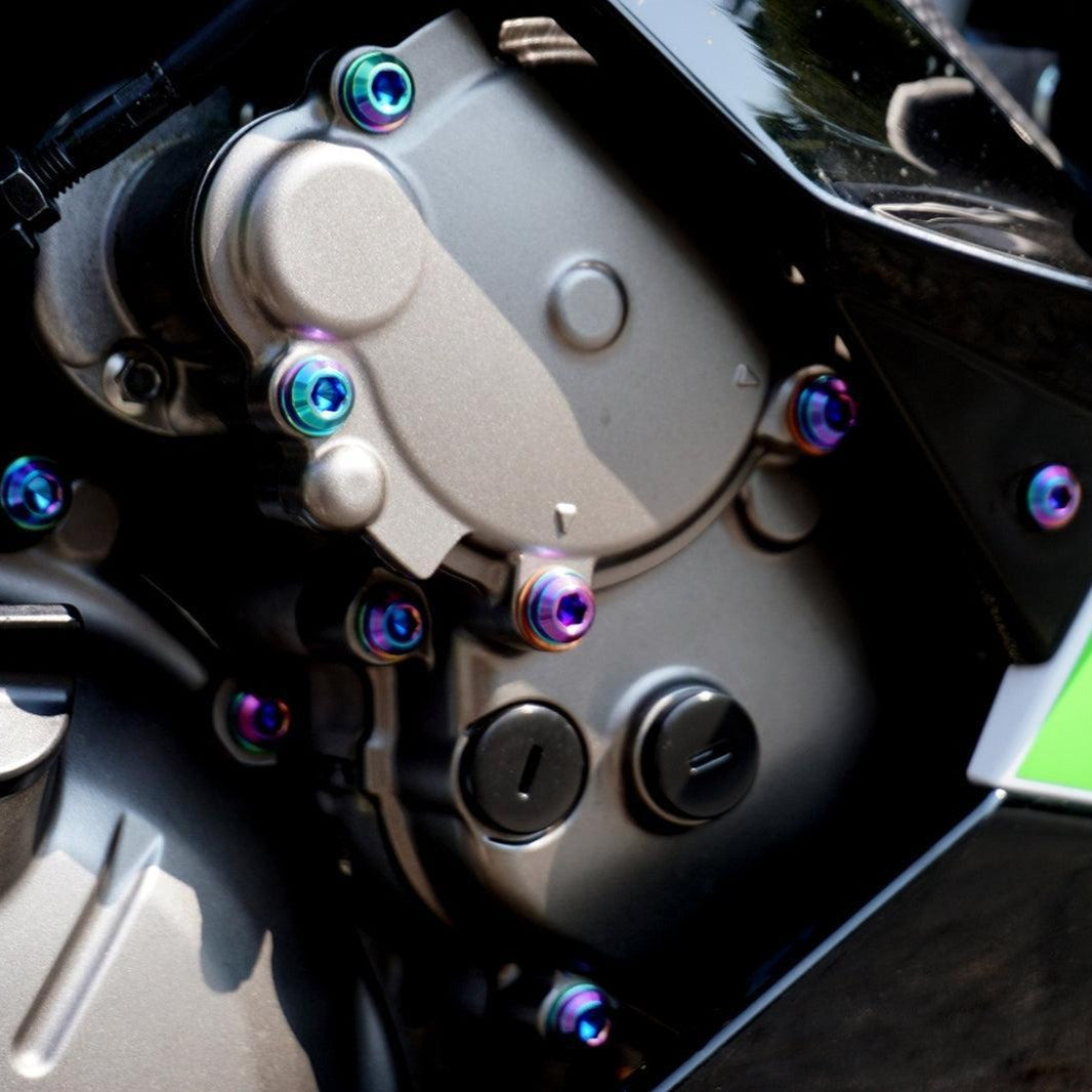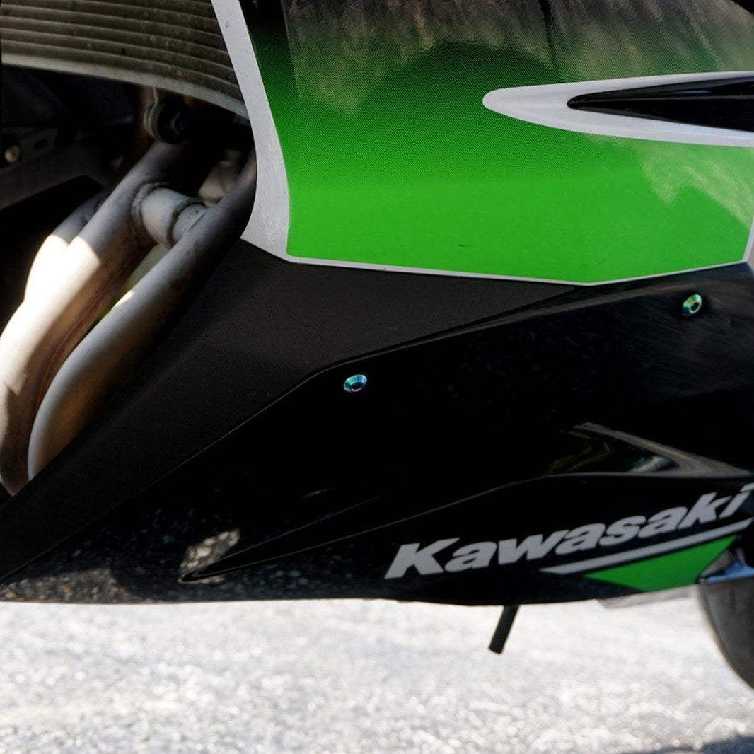 ZSPEC's Titanium Dress Up BoltsĀ® Fastener Kit for the Kawasaki Ninja 636 ZX6R motorcycle provides an aesthetic upgrade to factory hardware.